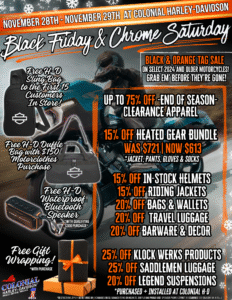 Don’t miss Black Friday & Chrome Saturday at Colonial Harley-Davidson!